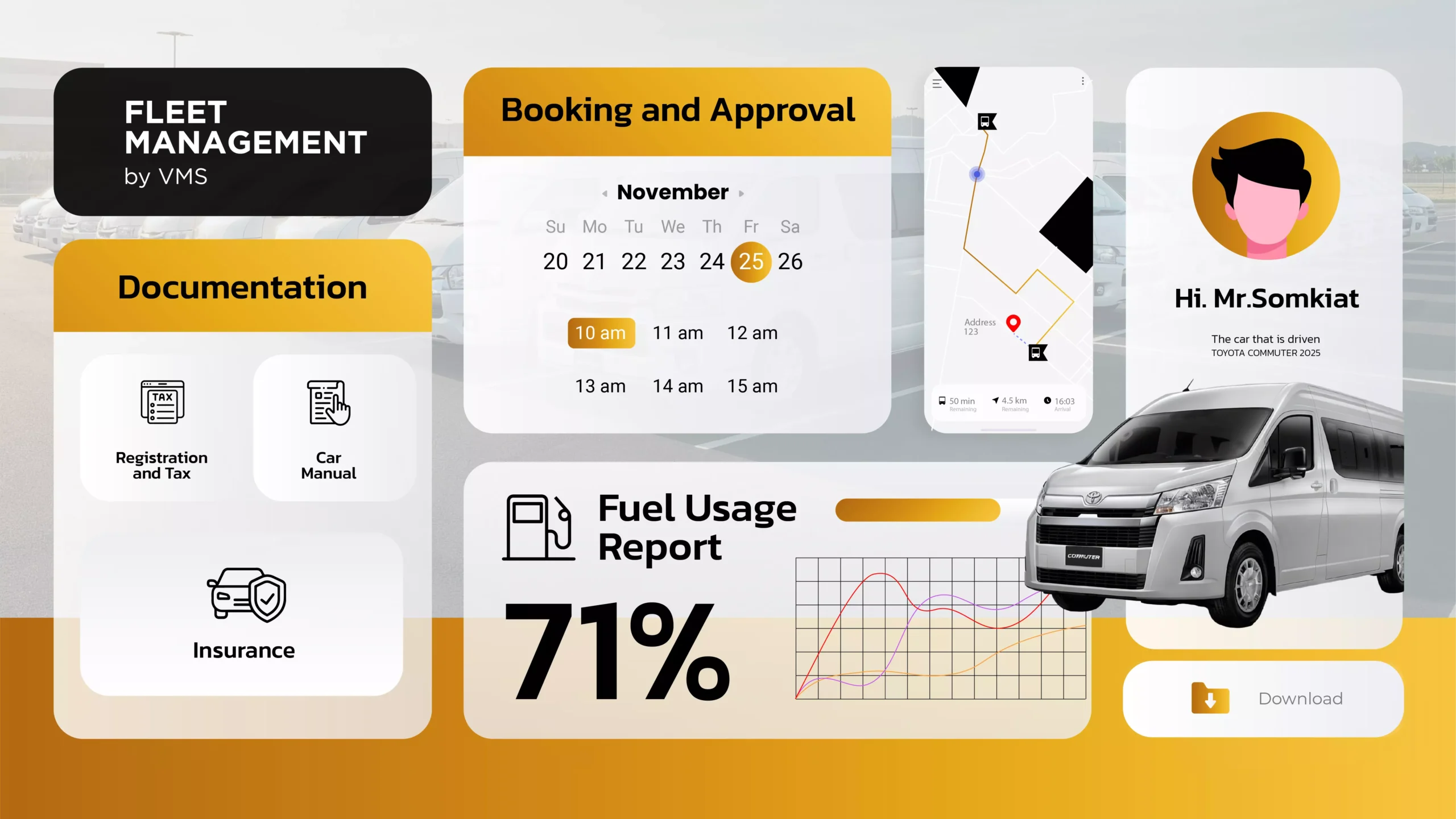 SO WHEEL พัฒนาโซลูชันยานพาหนะที่ครบวงจร ตั้งแต่การวางแผนการใช้รถ การเชื่อมเอกสาร/ภาษี การซ่อมบำรุง ไปจนถึงการติดตามสถานะรถแบบเรียลไทม์ ลดกระดาษและงานแอดมิน แถมตรวจสอบได้ทั้งเส้นทาง (End-to-End Traceability)